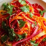 This 5-Minute Raw Carrot Salad is a fresh, vibrant side dish that combines sweet, tangy, and savory flavors. It’s quick to prepare, making it perfect for busy weeknights or a simple addition to any meal. The carrot ribbons offer a delightful texture paired with a zesty dressing and a sprinkle of sesame seeds.