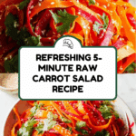 This 5-Minute Raw Carrot Salad is a fresh, vibrant side dish that combines sweet, tangy, and savory flavors. It’s quick to prepare, making it perfect for busy weeknights or a simple addition to any meal. The carrot ribbons offer a delightful texture paired with a zesty dressing and a sprinkle of sesame seeds.