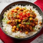 - Cooked rice, chopped coriander, and 1 red chilli (finely sliced, optional), to serve