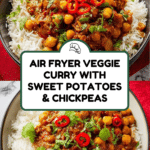A vibrant and healthy air fryer veggie curry featuring sweet potatoes, chickpeas, and aromatic spices. This easy-to-make recipe combines roasting and air frying techniques to create a delicious, comforting curry that’s perfect served with rice and fresh coriander.