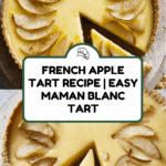 This Apple Tart ‘Maman Blanc’ is a classic French-inspired dessert featuring a crisp buttery shortcrust pastry base filled with thinly sliced apples arranged in concentric circles, glazed with a Calvados-butter mixture, and topped with a light cream and egg custard. The tart is baked until golden and caramelized, then served with cooling crème fraîche for a perfect balance of sweet and tart flavors.