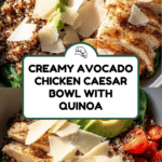 This Avocado Chicken Caesar Bowl is a wholesome, protein-packed meal combining tender grilled chicken, creamy avocado, and crisp romaine over a bed of quinoa or brown rice. With a rich homemade Caesar dressing and fresh ingredients like cherry tomatoes and Parmesan, it delivers all the classic Caesar salad flavors in a satisfying bowl perfect for lunch or dinner.