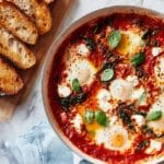 This baked eggs dish combines vibrant spinach, tangy tomatoes, creamy ricotta, and fresh basil for a comforting meal. It’s perfect for breakfast, brunch, or a light dinner, served alongside crusty bread to soak up the flavorful sauce.