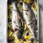 Keywords: baked sea bass, fennel, Mediterranean fish recipe, healthy fish dish, roasted sea bass, lemon and herbs fish