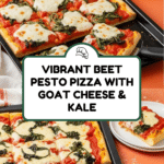This vibrant Beet Pesto Pizza with Goat Cheese and Kale offers a unique twist on traditional pizza, combining earthy roasted beet pesto, fresh kale, creamy goat cheese, and mozzarella on a crisp homemade crust. The beet pesto is rich and flavorful, made with roasted beets, walnuts, Parmesan, lemon juice, and garlic, providing a colorful and nutritious base for the pizza toppings. Baked to perfection and finished with a broil for bubbly cheese, this pizza is both visually stunning and delicious, perfect for a creative vegetarian meal.