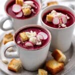 A vibrant and nourishing beetroot soup enhanced with tangy feta, crisp radishes, and crunchy sourdough croutons. This comforting recipe balances earthy flavors and creamy textures, perfect for serving hot or chilled.