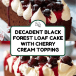 Keywords: Black Forest loaf cake, chocolate loaf cake, cherry chocolate cake, cake with whipped cream, chocolate cherry dessert