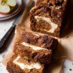Keywords: chai spice, apple butter, muffin bread, breakfast bread, cream cheese swirl, fall recipe, cinnamon, spiced bread, honeycrisp apple
