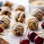Delightfully soft and wholesome Cherry Cheesecake Oat Cookies made with ripe bananas, fresh cherries, and a creamy maple-sweetened cream cheese icing. These baked treats combine natural sweetness with the comforting flavors of cinnamon and oats, perfect for a healthy snack or dessert.