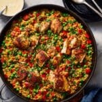 Keywords: chicken, chorizo, one-pan meal, paella, easy dinner, Spanish recipe, skillet rice