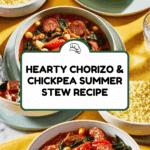 This Chorizo & Chickpea Summer Stew is a vibrant and hearty dish perfect for warm evenings. Combining spicy chorizo with sweet roasted peppers and tender chickpeas, it delivers layers of flavor in a comforting stew. Serve it with crusty bread for a satisfying meal.