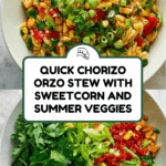 This chorizo, orzo & sweetcorn summer stew is a vibrant and comforting dish perfect for warm evenings. Packed with smoky chorizo, fresh vegetables, and tender orzo, it’s a flavorful meal that comes together quickly and easily.