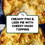 Keywords: fish pie, creamy fish pie, leek pie, seafood pie, baked fish pie, comforting dinner, British fish pie, haddock pie, salmon pie, king prawn pie