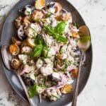This Creamy Grilled Smashed Potato Salad is a delicious twist on a classic side dish. Tender baby potatoes are smashed, grilled to perfection, and tossed in a zesty lemon-herb yogurt sauce with quick-pickled shallots for a burst of flavor. It’s perfect for warm-weather meals or any time you want a fresh, creamy potato salad with a smoky kick.