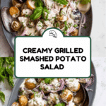 This Creamy Grilled Smashed Potato Salad is a delicious twist on a classic side dish. Tender baby potatoes are smashed, grilled to perfection, and tossed in a zesty lemon-herb yogurt sauce with quick-pickled shallots for a burst of flavor. It’s perfect for warm-weather meals or any time you want a fresh, creamy potato salad with a smoky kick.