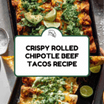These Crispy Rolled Chipotle Beef Tacos are a flavorful twist on a classic favorite. Tender, spicy meat rolled in tortillas and baked until perfectly crispy makes for a satisfying and fun meal. Topped with melted cheese and a creamy chipotle ranch, they’re sure to be a hit at any dinner table.