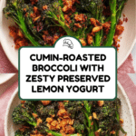Keywords: cumin roasted broccoli, preserved lemon yogurt, spiced breadcrumbs, Mediterranean side dish, vegetarian broccoli recipe
