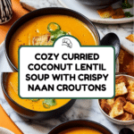This curried coconut lentil soup is a warm and comforting dish packed with fragrant spices and creamy coconut milk. Topped with crunchy naan croutons, it’s perfect for a cozy meal that’s both satisfying and full of flavor.