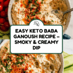 This Easy Baba Ganoush recipe is a smoky, creamy Middle Eastern eggplant dip that’s both Keto and Whole30 friendly. Featuring charred eggplants blended with tahini, garlic, and lemon juice, it’s perfect as a healthy appetizer or snack served with veggies or pita chips.