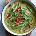 - Cook the French Beans: Add the trimmed French beans to the curry, cover again, and cook for an additional 10 minutes until the beans are tender but still slightly crunchy. Taste and adjust seasoning with more lime juice, fish sauce, or sugar as desired.