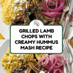 Keywords: grilled lamb chops, hummus mash, Mediterranean lamb recipe, healthy lamb dinner, grilled courgettes, marinated onions