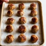 Delicious and easy baked meatballs made with a blend of ground beef and pork, seasoned with garlic, onion, parsley, and spices, baked to perfection and finished under the broiler for a crispy crust.