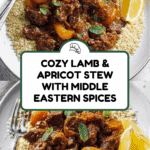 Keywords: Lamb stew, apricot stew, Middle Eastern lamb recipe, ras-el-hanout lamb, slow simmered lamb, couscous stew