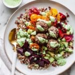 This lamb meatballs and green tahini tabbouleh dish offers a fresh, vibrant twist on classic flavors. Combining tender meatballs with a zesty, herb-packed salad and creamy tahini dressing, it’s perfect for a light yet satisfying meal.