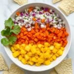 Keywords: Mango Salsa, Fresh Salsa, Mexican Salsa, Summer Recipe, Easy Salsa, No Cook Salsa, Party Dip