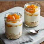 - Prepare Mascarpone Layer: In a separate bowl, mix the mascarpone cheese and honey together until smooth and creamy. Spoon this mixture evenly on top of the oat mixture inside each jar.