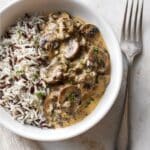 Keywords: Mushroom Stroganoff, Vegetarian Stroganoff, Wild Rice, Comfort Food, Easy Dinner, Meatless Meal