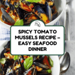 This vibrant Mussels with Tomatoes & Chilli recipe combines fresh mussels with a flavorful sauce made from ripe tomatoes, garlic, shallots, and a hint of chilli. The mussels are steamed to perfection in a lightly spiced tomato and white wine broth, garnished with aromatic basil leaves. It’s a quick, elegant seafood dish perfect for a light lunch or dinner.