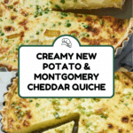 Keywords: New potato quiche, Montgomery cheddar, spring onion quiche, homemade pastry quiche, British quiche recipe, savory tart, vegetarian quiche