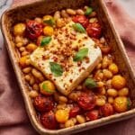 Keywords: baked feta, cherry tomatoes, butter beans, one-pan recipe, Mediterranean, vegetarian, easy dinner, summer recipe