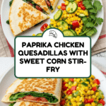 Keywords: Paprika Chicken Quesadillas, Sweet Corn Stirfry, Chicken Quesadilla Recipe, Quick Dinner, Easy Mexican-Inspired Dish