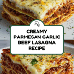 Keywords: Parmesan garlic beef lasagna, classic Italian lasagna, comfort food recipe, beef and sausage lasagna, creamy béchamel sauce lasagna