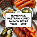 Keywords: pastrami salmon, cured salmon, cured fish recipe, easy cured fish, salmon appetizer, smoked salmon alternative, pastrami cure, black treacle glaze