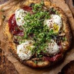 Store any leftover pizza in an airtight container in the refrigerator for up to 2 days. Reheat in a preheated oven at 375° F for about 8-10 minutes to keep the crust crispy. Avoid microwaving to prevent sogginess, especially because of the fresh burrata and delicate toppings.