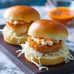 Store any leftover prawn burgers in an airtight container in the refrigerator for up to 1 day. It’s best to keep the slaw and chilli mayo separate until ready to serve. Reheat the burgers gently in a low oven or a dry frying pan to maintain their crispiness. Avoid microwaving as it can make them soggy.