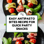 These Quick & Easy Antipasto Bites are perfect for entertaining or a simple snack. Combining fresh mozzarella, savory meats, olives, and a tangy balsamic drizzle, they offer bold flavors on a convenient skewer.