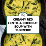 Keywords: red lentil soup, coconut soup, turmeric soup, healthy soup, vegetarian soup, gluten free recipe, immune boosting soup, easy lentil soup