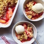 Keywords: Rhubarb crumble, apple crumble, British dessert, easy crumble recipe, autumn dessert, warm dessert, baked fruit dessert