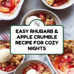 A classic Rhubarb & Apple Crumble recipe featuring tart rhubarb and crisp apples baked under a golden, buttery crumble topping with a hint of warming ginger. Perfectly paired with ice cream or custard for a comforting dessert.