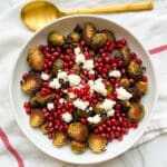 Store leftover roasted Brussels sprouts in an airtight container in the refrigerator for up to 3 days. Reheat gently in the oven or microwave to preserve texture. Add pomegranate seeds fresh when serving again for the best taste.