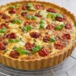 This roasted tomato, basil & Parmesan quiche is a delightful mix of fresh flavors and creamy textures. Perfect for a light lunch or dinner, it combines the sweetness of oven-roasted cherry tomatoes with fragrant basil and sharp Parmesan in a buttery, crisp pastry.