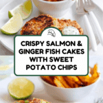 Delicious and healthy salmon and ginger fish cakes served with crispy sweet potato chips, perfect for a nutritious and flavorful meal. These fish cakes combine fragrant ginger, lime zest, and spring onions for a tasty twist, complemented by a side of oven-roasted sweet potato chips and an optional wasabi mayonnaise dip.