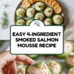 This creamy and flavorful Salmon Mousse is a simple and elegant appetizer made with just four main ingredients. Blended smooth with cream cheese, smoked salmon, fresh lemon juice and zest, and dill, it makes a perfect cold spread for crackers, toasts, cucumbers, or bagel chips. Ready in minutes, it’s ideal for entertaining or a light snack that’s both impressive and delicious.