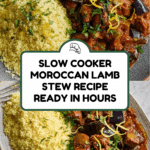 Keywords: Moroccan lamb stew, slow cooker lamb, North African stew, lamb shoulder recipe, slow cooked lamb, couscous recipe, Mediterranean stew