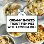 Deliciously creamy smoked trout fish pies topped with fluffy mashed potatoes and a hint of horseradish and dill, baked until golden and bubbling. A comforting and flavorful dish perfect for using leftover mashed potatoes.