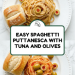Keywords: Spaghetti Puttanesca, Italian pasta, tuna pasta, olive sauce, quick pasta recipe, seafood pasta